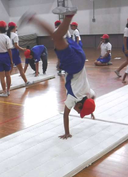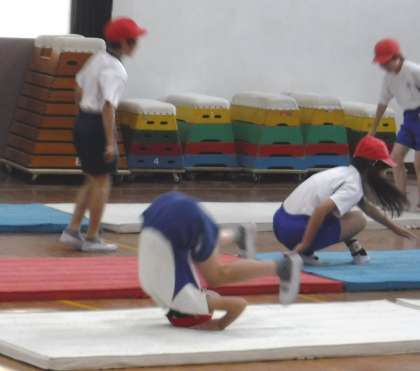 体育では「マット運動」を学習しています。今日は自分の今できる技を確認しました。次の体育の時間からは,安全に気をつけながら新しい技にも挑戦していきます!