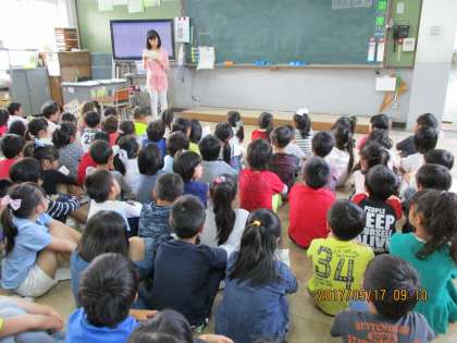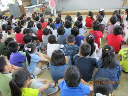 歌を歌ったり,クイズを出したりして1年生をお祝いします。