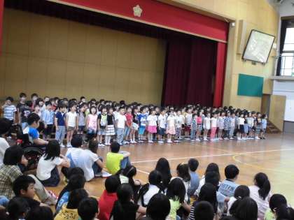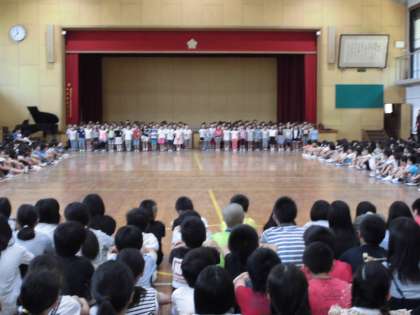六年生はしっとりとすてきな歌声を聴かせてくれました。心のこもったメッセージ感動しました。さて,一年生!みんなのお祝いメッセージにしっかりとこたえてくれました。元気な歌声すてきでした。