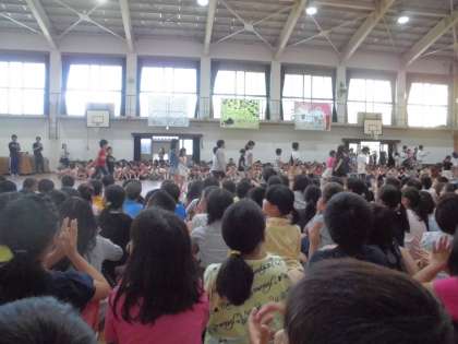 4年生一人一人がスクラムを組んで良い発表ができましたね。ナイス トライ!