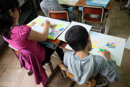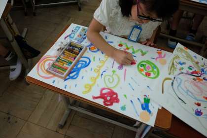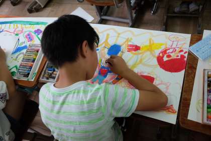 思い描いた世界をクレパスで描き足すことができました。