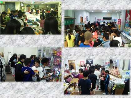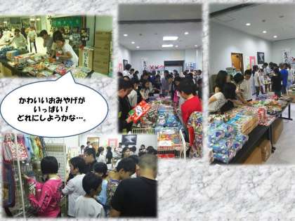 おみやげ屋さんでおみやげを選んでいます。