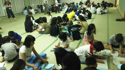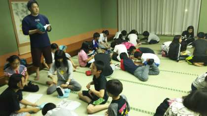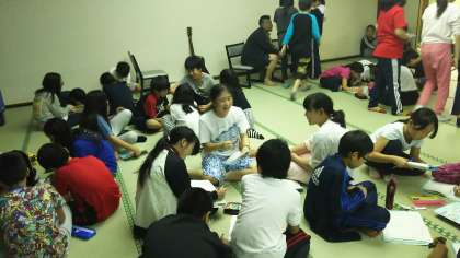 今日1日を振り返り,仲よく,楽しく活動することができたかを話し合っています。