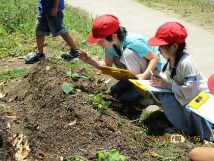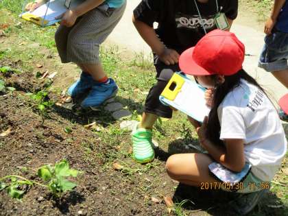 体育館の裏の畑に,サツマイモの苗を植えました。
