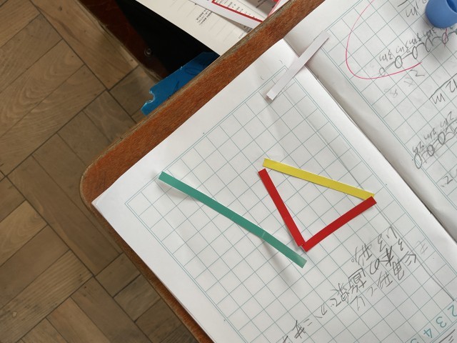 算数の学習で三角形作りをしました