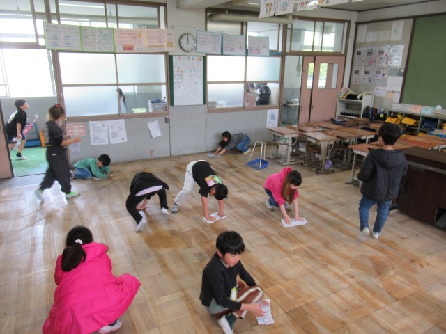 お楽しみ会の後は、1年間使った机や椅子、教室や廊下をみんなできれいにしました。