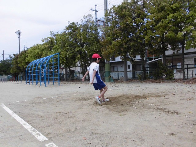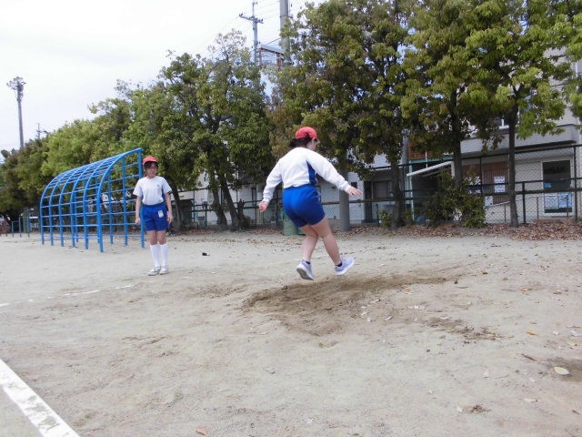 5年生になって初めての走り幅跳び。今日は踏切や着地の仕方を確認しました。