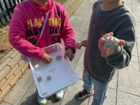 2月9日に雪が少し積もったので、雪遊びをしました。雪玉を作ってなげたり、雪だるま...