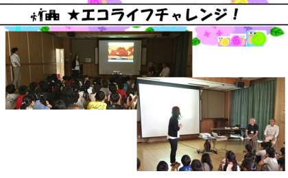 地球温暖化の現状等をスクリーンに映し出して,子ども達に分かりやすく解説し学習をすすめていました。また,子ども達へのインタビューを交えた地球温暖化に関する「4択クイズラリー」等を通して,楽しい雰囲気の中で,地球温暖化防止の大切さや家庭でのエコライフの実践方法について学習しました。