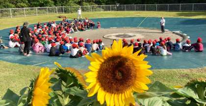 子どもたちを見守る美しくさきほこるひまわり!