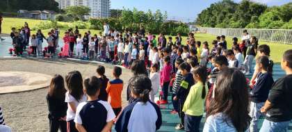 校歌を歌い,旗をあげました!