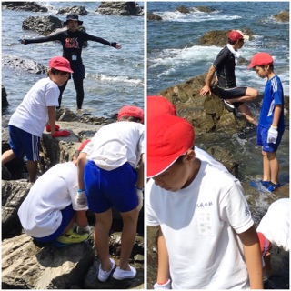 楽しい磯浜活動でできるよう,教職員が安全管理を徹底!