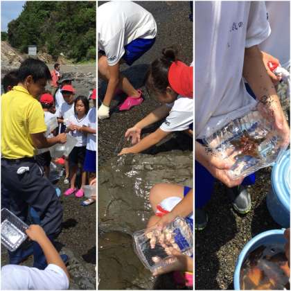 マリンランドの所員さんと,ヒトデを使っての海の生物の学習をしました!