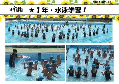 ・水になれる遊びや浮く,もぐる遊びを楽しく行い,水につかったり移動したりもぐったり,水中で息をふいたりすることができるようにする。