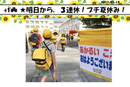 ★「おはようございます!今日は,金曜日です!明日から,3日間の夏休みです!」