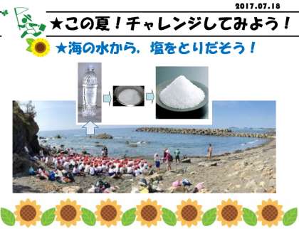 塩を取り出すまでの様子をデジカメでとって記録として残すといいですね。