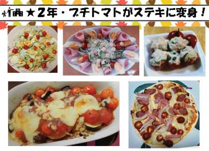 なんと,子どもたちが中庭で育てたプチトマトでおうちの人が作った料理がいっぱい!