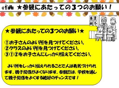 ★参観にあたっての3つのお願い! (2017.09.10)