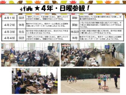 今日の参観では,国語・体育・社会と算数・外国語の授業を参観していただきました!