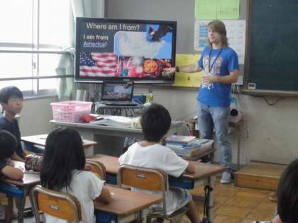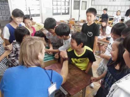 一生懸命英語を聞き取り,ジョー先生のことを知ろうとする子どもたち。
