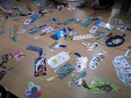 そして,机の上に所狭しと並んだ,大量のしおり!!!