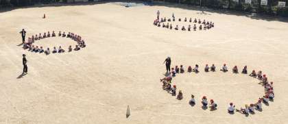1年生の皆さんが 運動場で