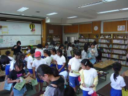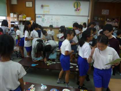 1・2・3年生は50冊,4・5・6年生は25冊本を読めていたら,1枚しおりをもらうことができました。今日は,3〜6年生の子どもたちがしおりをもらう日となっていました。読書ノートをチェックしている間も,子どもたちのワクワクしている様子が伝わってきました。どのしおりにしようかと,休み時間が終わるまでよく見て選んでいました。