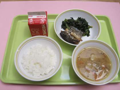 今日の給食も『一汁二菜』です。
