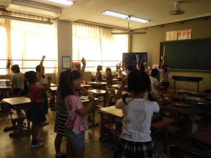中間休みや昼休みになると,各クラスからかわいい音楽とペットボトルをたたく音が聞こえてきます。
