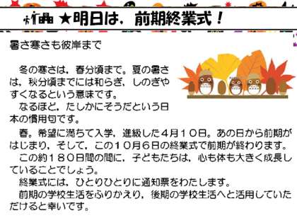 ★明日は,前期終業式!(2017.10.05)