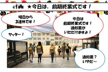 ★「今日は,前期終業式です! 通知票がいただけますよ!」