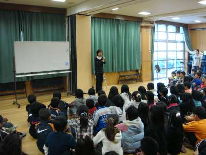 今日は,実際に聴覚障害の方に来校していただき,簡単な手話を使って