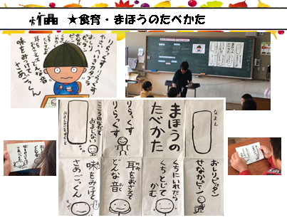 1年生の教室で栄養教諭が食育の指導をしていました。