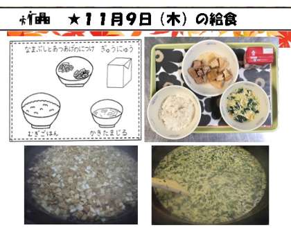 給食は1年生と6年生と一緒に食べました。1年生も6年生もなま節に抵抗がさほどなく,パクパクと食べている様子がみられました。汁物にはかきたま汁。少し口がパサつくなま節もこのかきたま汁があることでかなり食べやすかったようです。