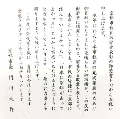平成29年・第69回・京都市教育功労者表彰を受賞しました!