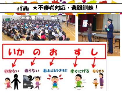 今日の避難訓練は,地震,火災でもなく,不審者対応の避難訓練です。