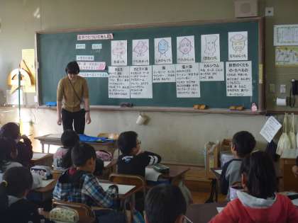 今日は,本校栄養職員に来ていただき,食に関する授業を受けました。今日のテーマは「おやつについて考えよう」です。日頃どんなおやつを食べているのかを出しあった後,どんな時間にどれくらい,どんなおやつを食べればいいのか自分たちの食生活を見直しました。「あまり甘いものは食べない」という子どもも結構いました。