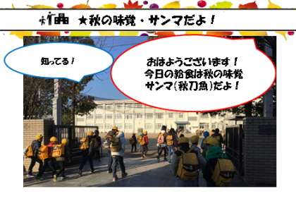 ★「今日の給食は,秋の味覚,サンマ(秋刀魚)だよ!」