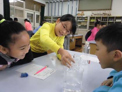 先日,初めて理科室で実験をしました。「温度が変わると試験管の中の空気や水の体積は変わるだろうか。」という学習課題で実験をしました。