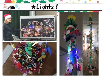 先日,ALTの先生との授業を参観した時に,美しいクリスマスのイルミネーションが大型テレビに映し出されました。