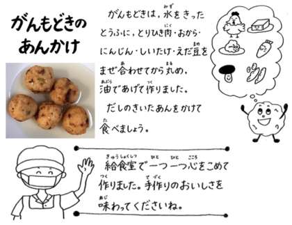 しかし,給食のがんもどきのあんかけ,おいしくいただきました!
