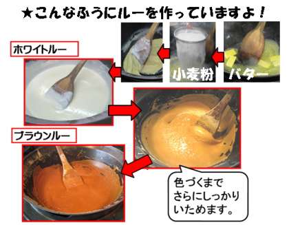 画像をみると,給食室でルーを作る過程がよくわかります。