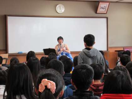 自分の経験を分かりやすく語りかけるように話してくださり,また,美しい歌声を聴かせていただきました。子どもたちも真剣なまなざしで聴き入っていました。