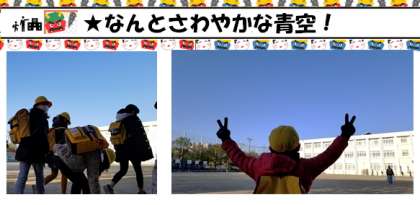そんな会話をしていると,低学年の子が雲ひとつない青空をバックに写真をとってほしそうにしていました。