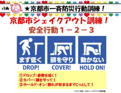 京都市シェイクアウト訓練に久我の杜小学校も参加しました。