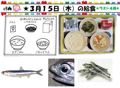 本日は五目どうふ・ほうれん草ともやしのいためナムル・じゃこです。