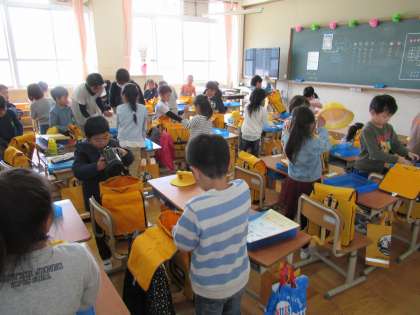 家の近くのお友達と一緒にしっかり並んで帰りました。