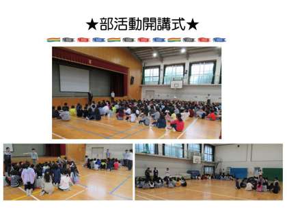 昼休み体育館で部活動の開講式がありました。