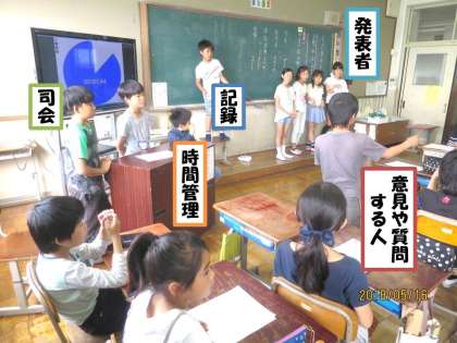 子どもたちは,話し合いの進め方を考えた後,議題「4月の係活動のについて」を設定し,実践してみました。