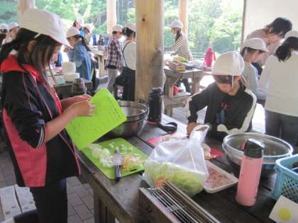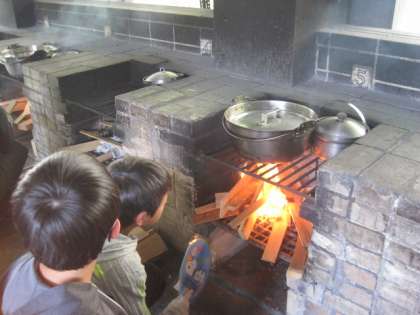 野菜を切る,米をあらう,かまどの火をつけるなどそれぞれしっかり役割を果たしていました。